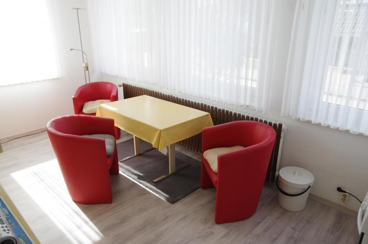 Dies Ferien wohnung ist 40m2 groß´und maximal für 3 Personen geeignet. Sie findet sich im Souterrain (hell und behaglich) und besteht aus einem Wohnraum mit Klappbett, einem Schlafzimmer mit Doppelbetten, einer Küche mit Sitzecke, einem Bad und Flur.